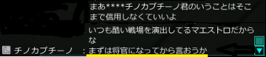 • チノの茶で、画像指摘した人にチノ反論:『画像ねつ造できるから』→証拠画像は全てねつ造扱い。(会話終了。)署名の件の”穴”といい、それしかできない指揮戦法のとおり、ぬけ作君。指揮ランが自信なので、誰か指揮動画が完璧なのか検証求ム。(この戦法でこれよりヒドイのは、全員で全凸してくれてたら勝てたのに負け惜しみ君ぐらい→ゲージ推移上、ありえなかった。負け惜しみ君がまだ把握もできないレベルの頃。) -- 2019-04-13 (土) 12:55:22